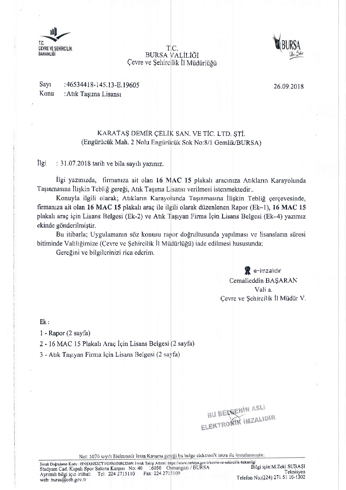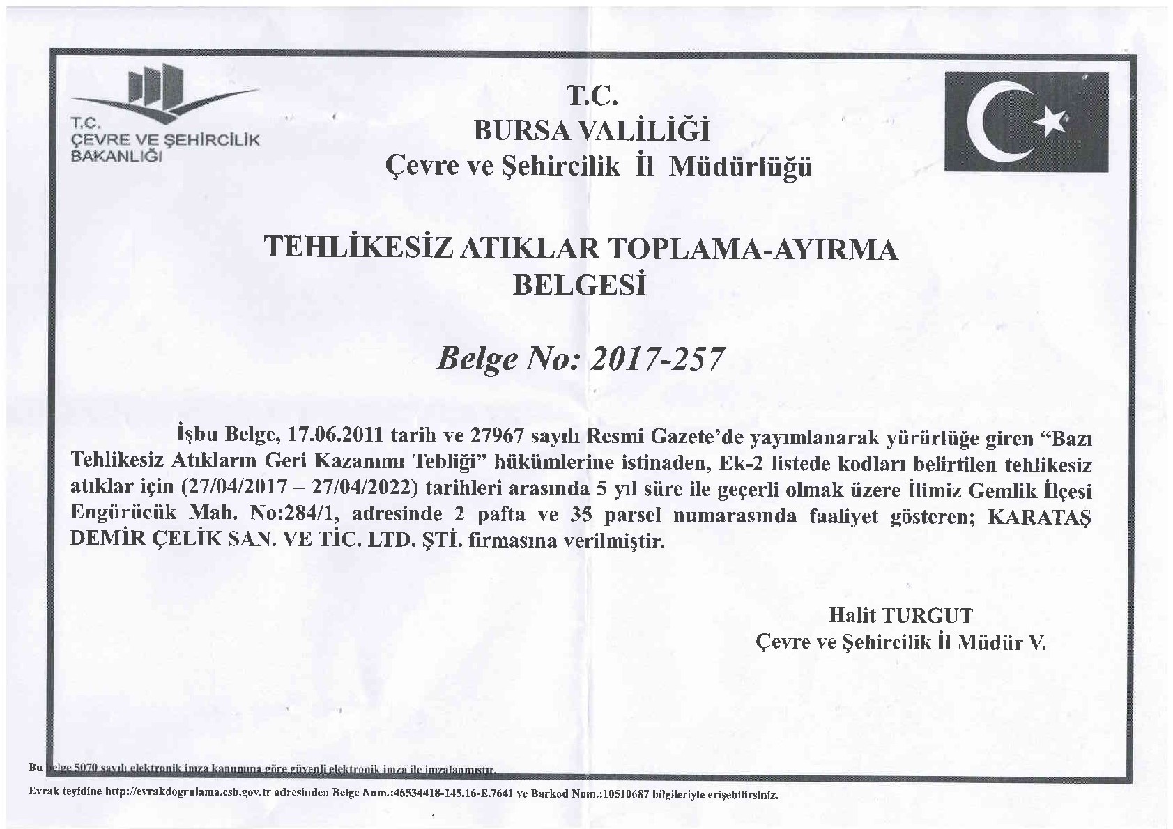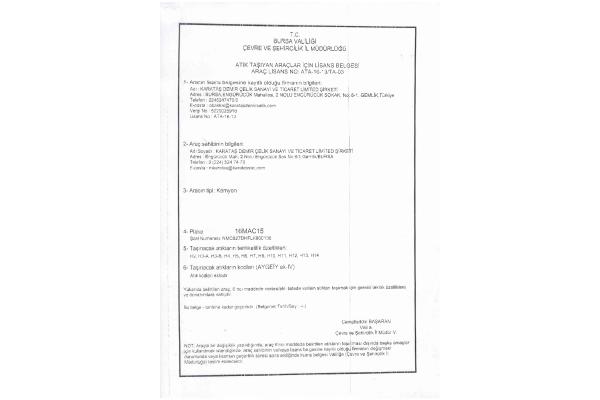Çevre İzin ve Lisans Belgesi
